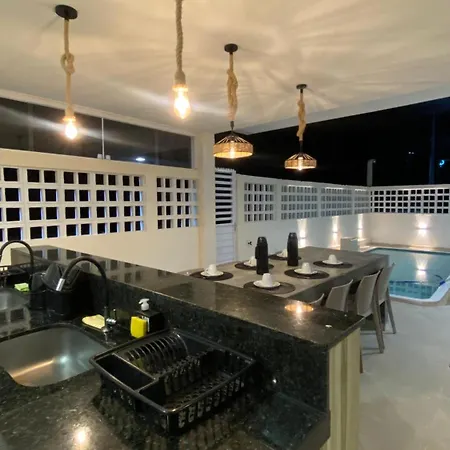 A fully furnished kitchen is part of the amenities available at Casa Beira Mar 4 Quartos Com Piscina Privativa Perto De Maragogi. - ❓